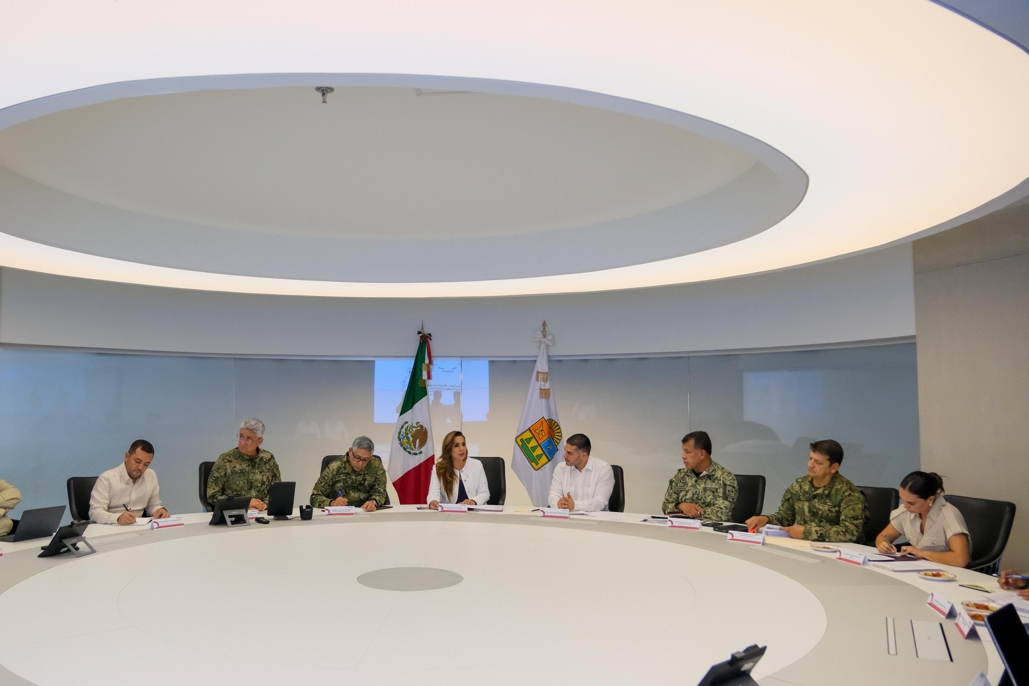 Cancún, 15 de Octubre del 2024.- El Secretario de Seguridad Nacional y Protección Ciudadana Omar García Harfuch y el Secretario de Marina, Almirante, Raymundo Pedro Morales Ángeles, presentaron a la gobernadora del estado Mara Leza la estrategia para la Construcción de la Paz y la Seguridad en Quintana Roo.