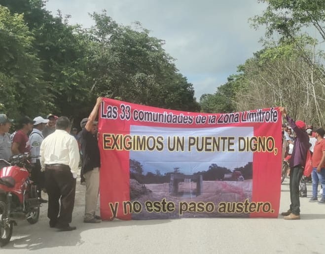 Desde el pasado martes, los habitantes habían denunciado que los ingenieros del Tren Maya construyeron un puente de cuatro metros de ancho, por el que deberán pasar los más de dos mil habitantes de las 33 comunidades de la zona limítrofe.
