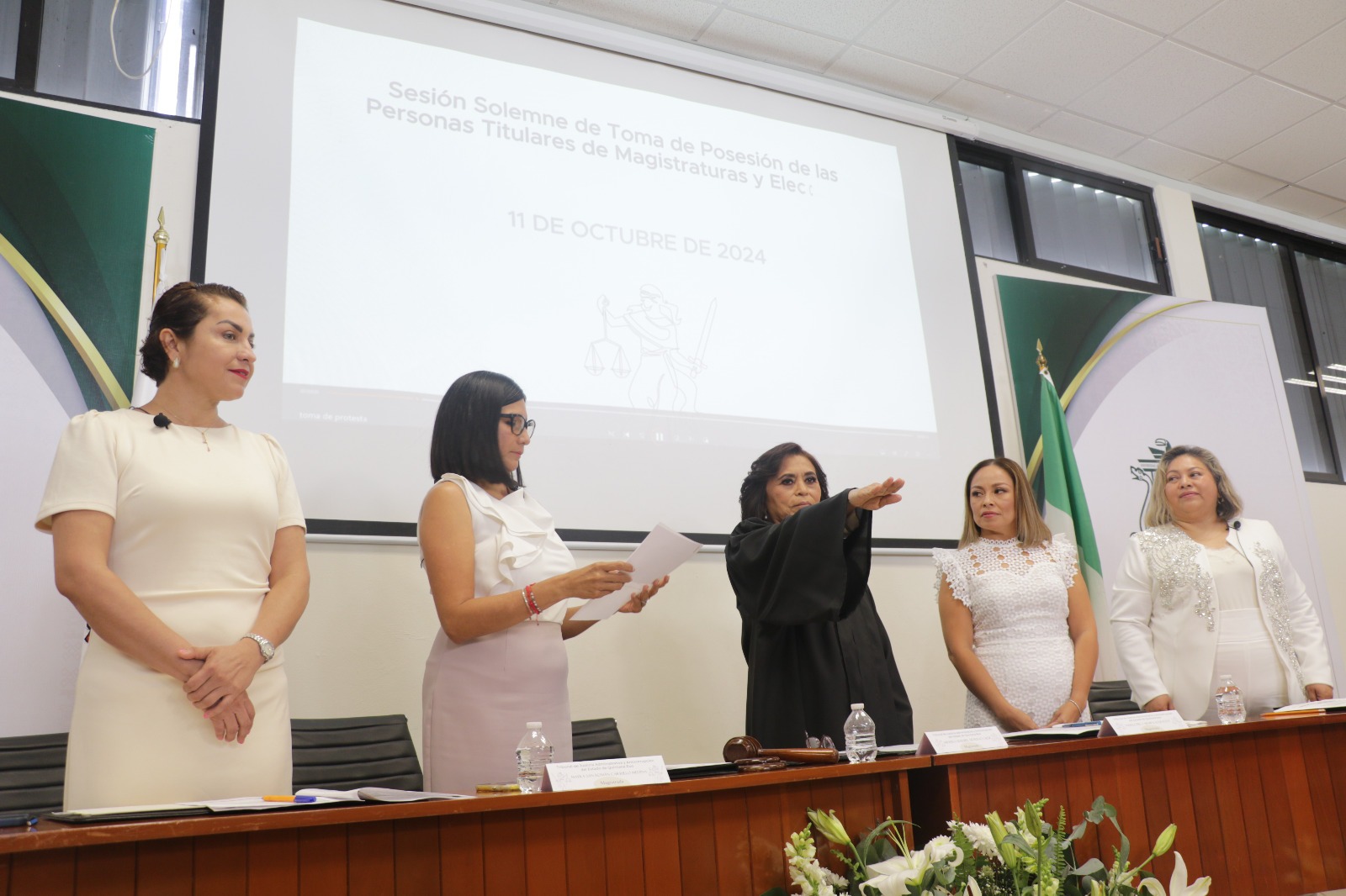 El primer Tribunal de Justicia Administrativa y Anticorrupción, integrado solo por mujeres en la historia del país, con el firme compromiso de sus magistradas que lo integran de impartir una justicia pronta, efectiva y completa en materia administrativa y anticorrupción, llevó a cabo su primera Sesión Solemne en la que designó por unanimidad a la Magistrada Minerva Maribel Moreno Cruz como presidenta de este órgano autónomo jurisdiccional, en cumplimiento del artículo 200 del Código de Procedimientos y Justicia Administrativa del Estado de Quintana Roo que faculta al Pleno para elegir entre las Magistradas a la Presidenta.