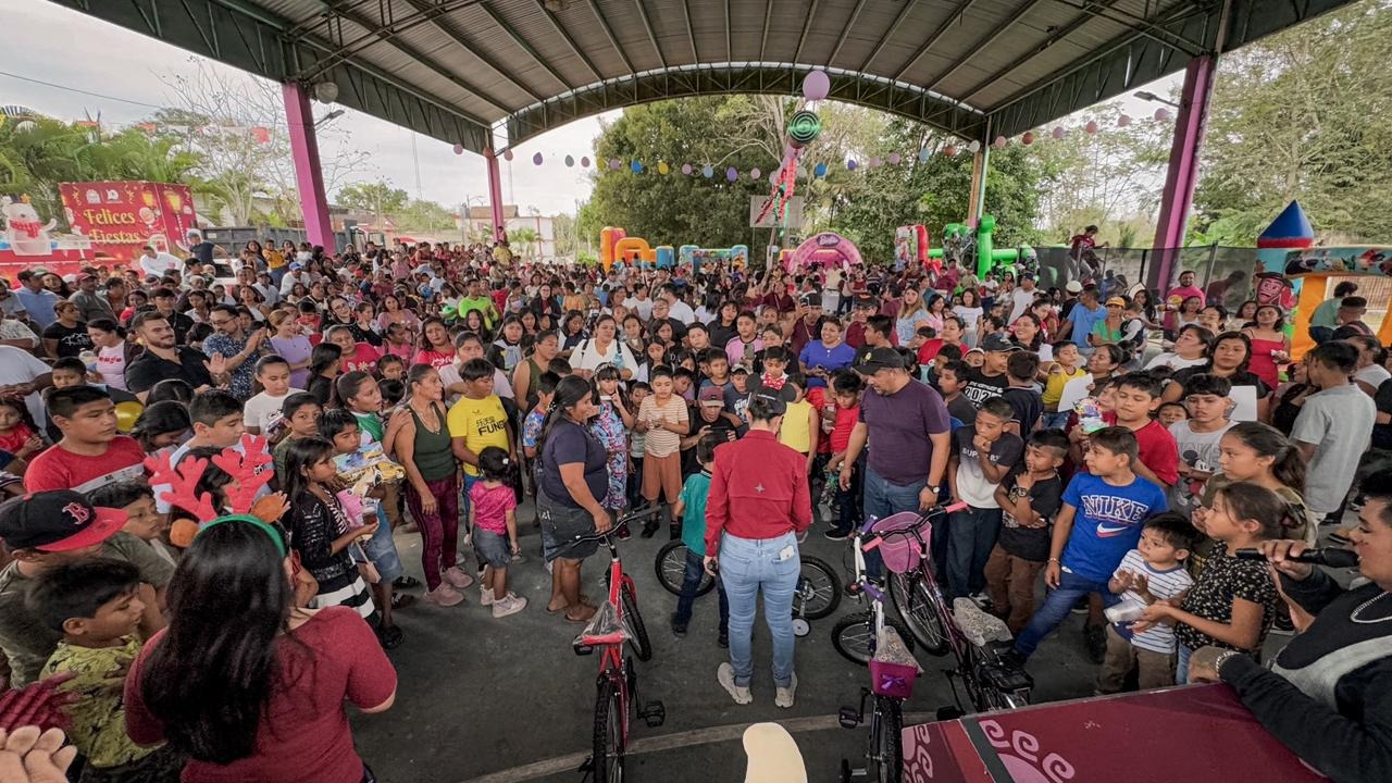 Los Tres Reyes magos visitaron la comunidad de Nicolás Bravo y, junto a la presidenta municipal Yensunni Martínez Hernández, llevaron muchas sorpresas y diversión a las niñas y niños, alegrando sus corazones en estas fechas de amor y unidad.